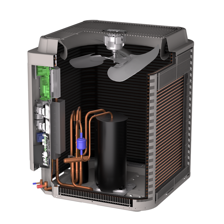 - Advanced electronic control quietly switches between heating, cooling and defrost modes